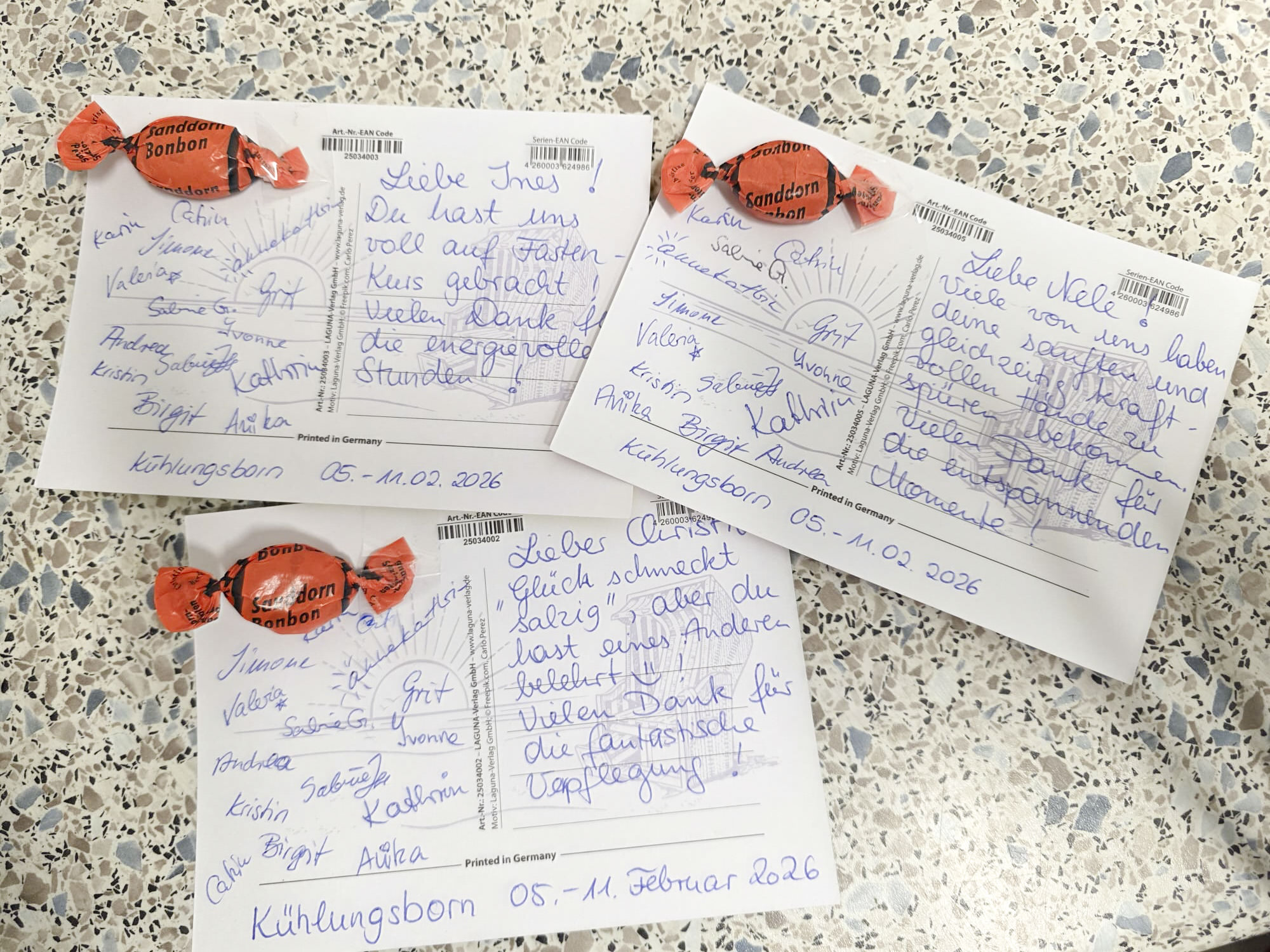 ganz herzlichen Dank für diese (wie immer) super schöne Woche. Man merkt, dass du das was du uns als Fastengruppe vermittelst, auch wirklich lebst. Und das ist immer wieder inspirierend.